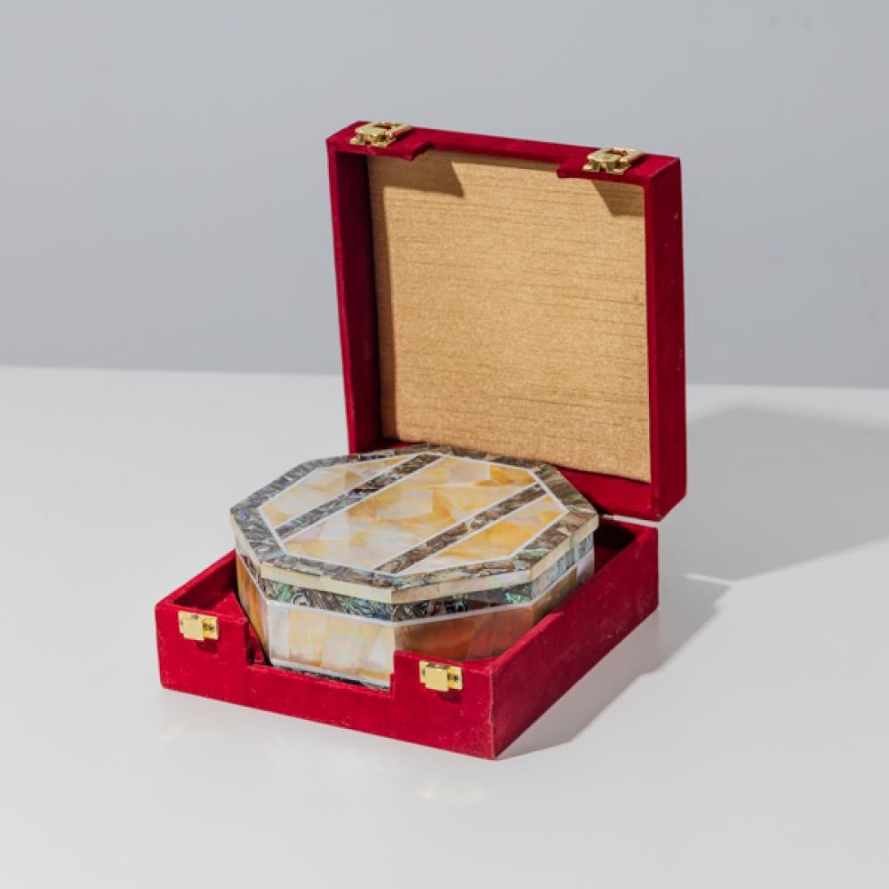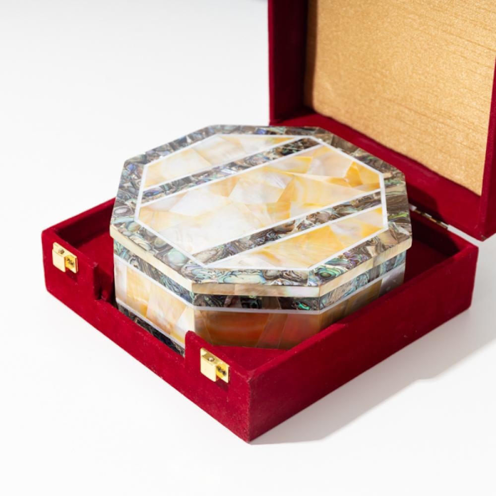 آنية رخاميه مضلعه ثقيلة فاخره راقية ملفتة رائعة لحفظ العود والمجوهرات و للزينه