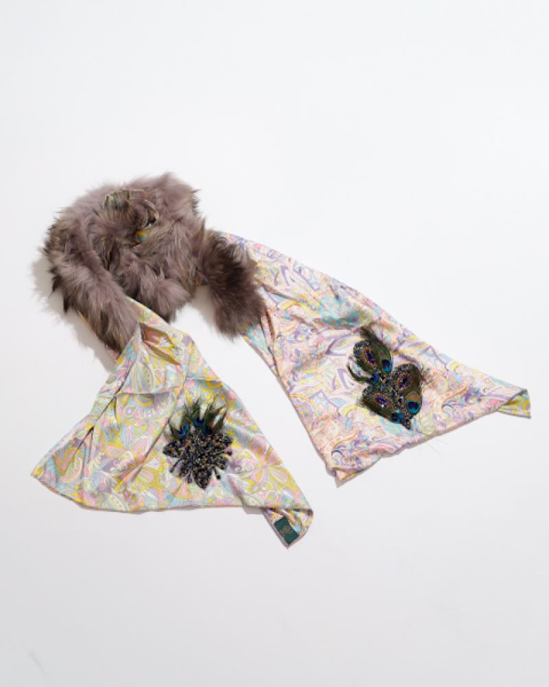 شال حرير فاخر بالفرو الفاخر ... دبل فيس مطعّم بنهايته بالكرستال الفاخر ذو شكل الطاووس ...