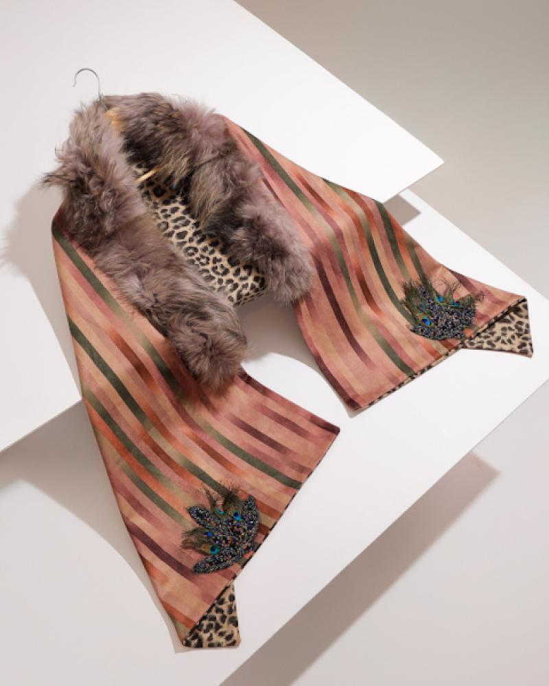 شال شامواه فاخر بالفرو الفاخر ... دبل فيس مطعّم بنهايته بالكرستال الفاخر ذو شكل الطاووس ...